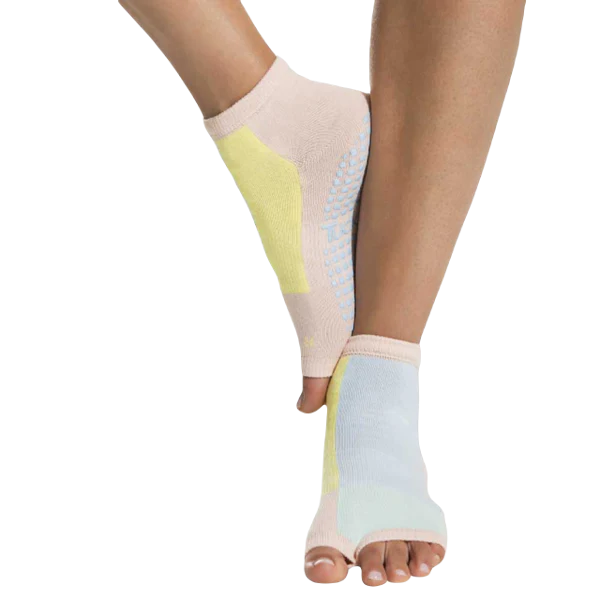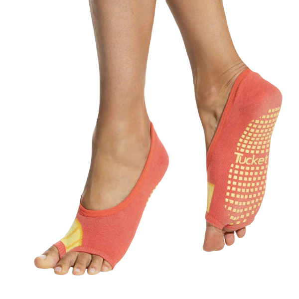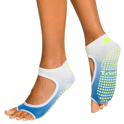 “Tucketts socks provide a safer alternative to being in a pilates/yoga/barre class barefooted. Tucketts allows the toes to have full sensory contact with the ground which helps strengthen the intrinsic musculature of the foot. The grips on the bottom of the socks help prevent slip injuries and the low-elasticity band at the center of the sock helps maintain the foot's arch, preventing tendon overuse injuries. Tucketts socks provide a great alternative to barefoot activities as they give the foot additional support and minimize infection risk.”