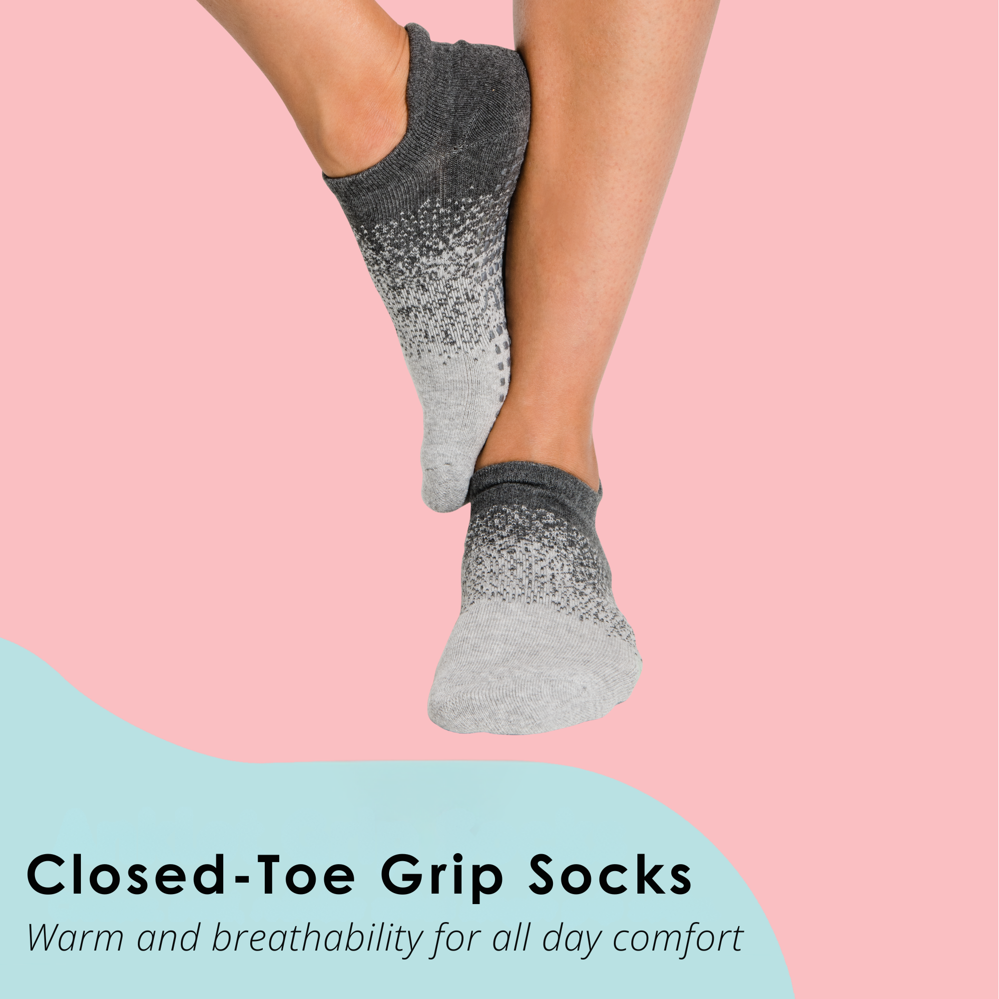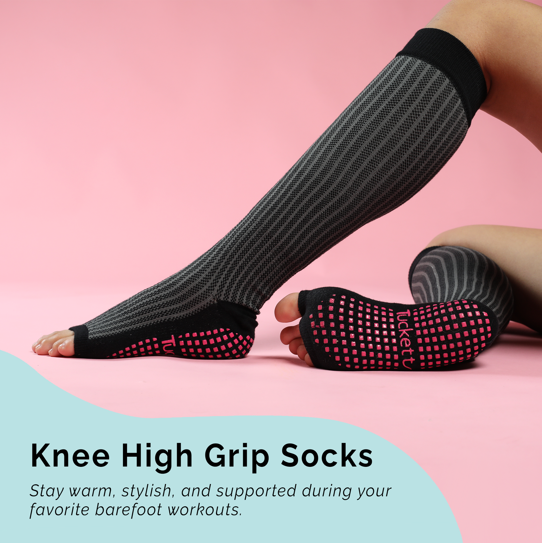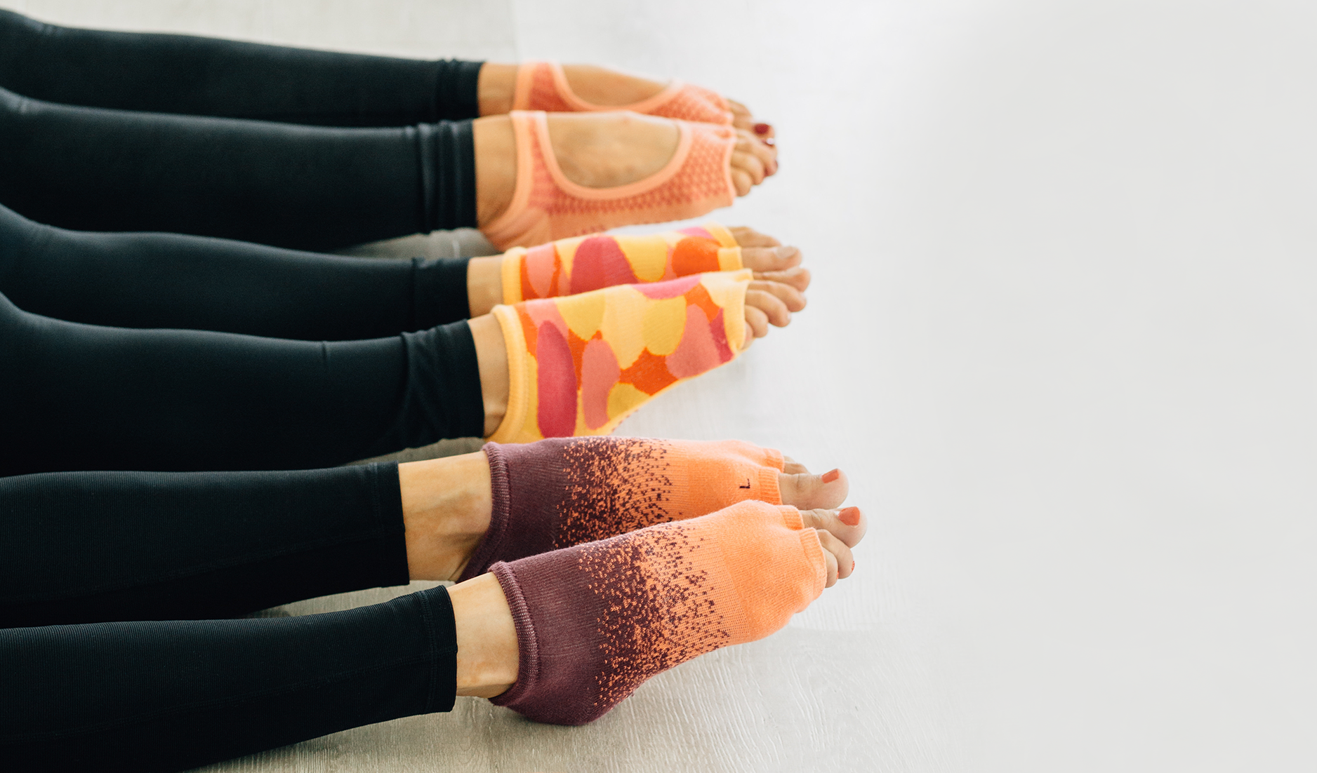 Our crew-length socks are designed with an anti-slip grip sole to help you feel confident and stable while exercising. Available in 3 styles: open toes, open toes-allegro & closed toes.